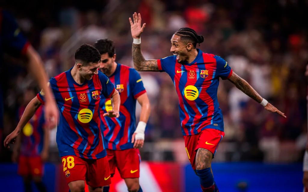 A final da Supercopa foi um verdadeiro El Clásico digno de história. Raphinha abriu o placar logo no primeiro tempo, Lewandowski ampliou e, mesmo com a reação do Real Madrid, o time catalão garantiu a vitória com o segundo gol do brasileiro. Essa conquista marca mais um título importante para o Barcelona, reforçando sua hegemonia no torneio.