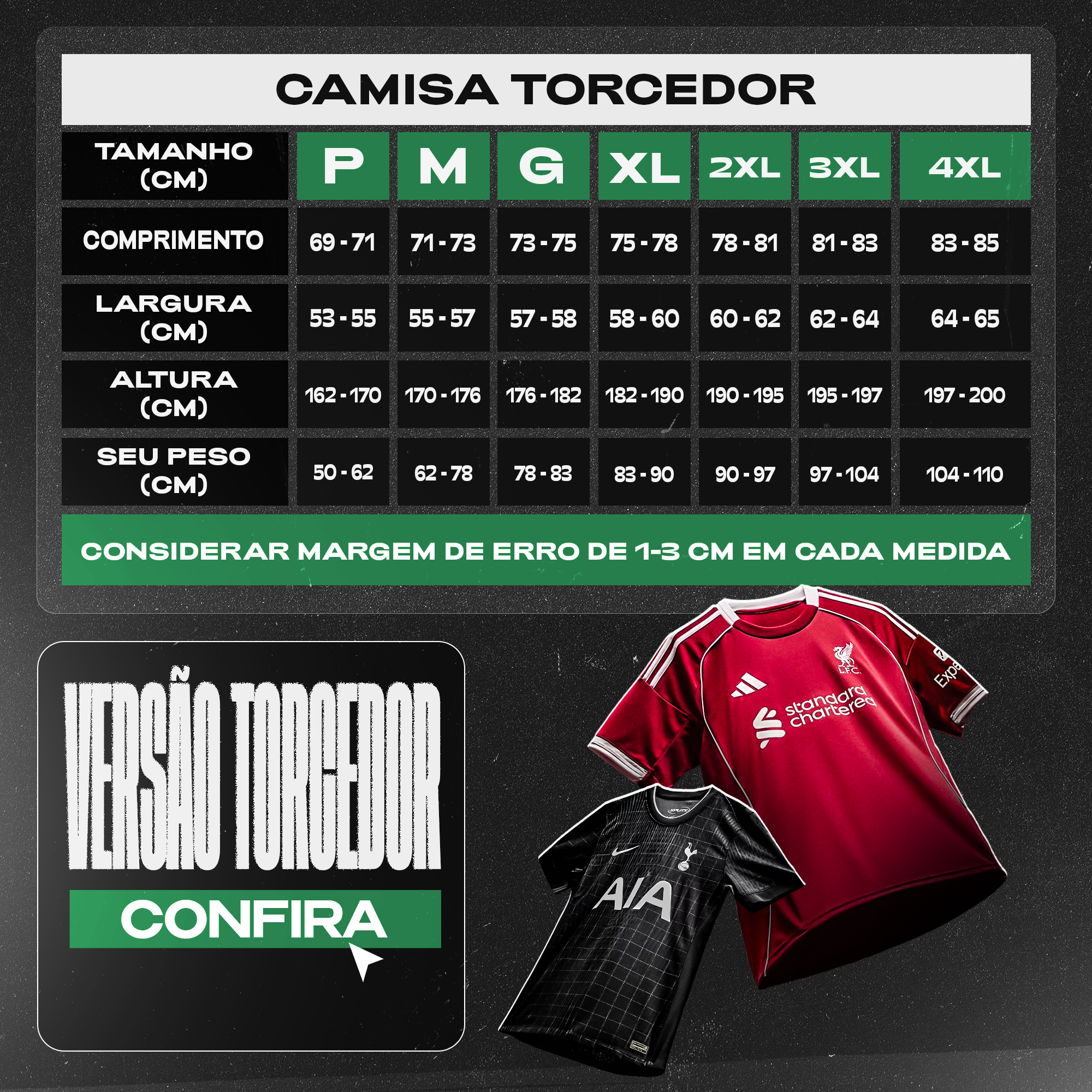 Nossos produtos são réplicas tailandesas com qualidade idêntica a original, confeccionados com o mesmo tecido, bordados, costuras e etiquetas, sendo realmente imperceptível a diferença.